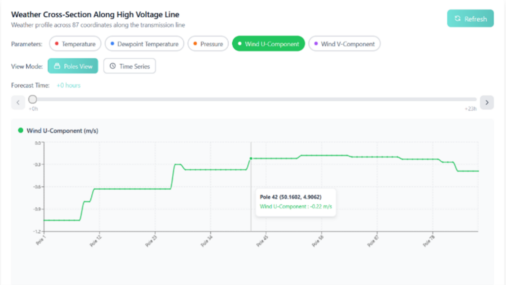 A web application has been developed to ensure practical usability. Users can upload transmission line coordinates, analyse temporal weather variability along these routes and obtain dynamic capacity estimates. The API enables automated integration of forecasts and indicators into existing operational systems. The application will be publicly available through the DestinE Platform, making it broadly accessible to researchers, decision-makers, and other stakeholders interested in high-resolution environmental data.